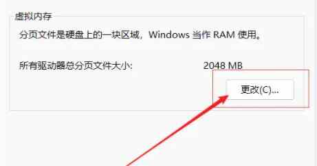 5、接着在其中找到虚拟内存,点击下方的“更改”就可以设置虚拟内存了