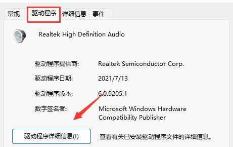4、进入“驱动程序”选项卡,点击“驱动程序详细信息”