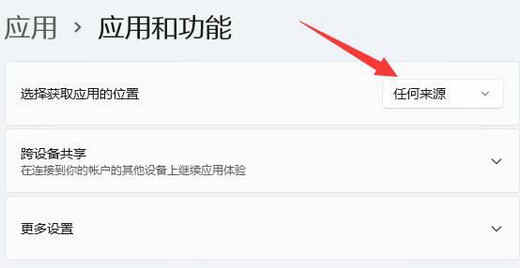 4、在其中修改选择获取应用的位置为“ 任何来源 ”即可。