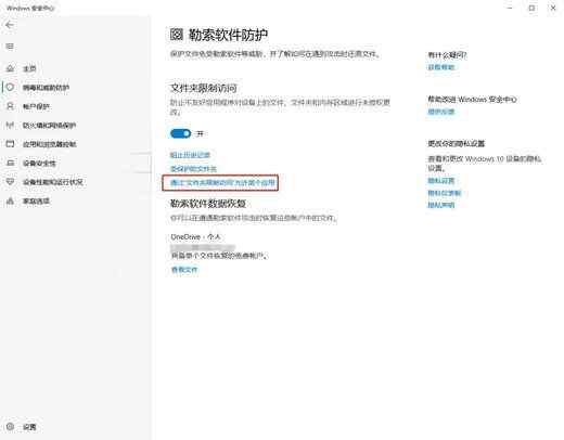win10用户在使用qq这款软件的时候遇到了无法访问个人文件夹的情况,导致无法进行文件传输操作,应该怎么办呢?你先打开电脑的windows安全中心,找到病毒和威胁防护,在它的下方点击管理设置,然后点击管理受控文件夹访问权限,之后选择通过文件夹限制访问允许某个应用,然后将qq添加进去即可。