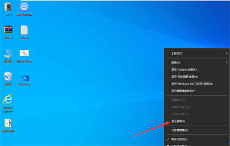 2、或者我们在任务栏空白处右键,看到显示桌面,鼠标点击即可。
