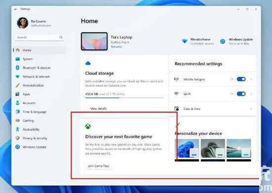 Windows11的设置菜单将加入PC Game Pass广告介绍:
