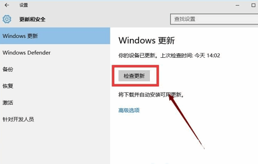 2、单击Windows Update中的“检查更新”,安装所有更新并重新启动。如下所示。