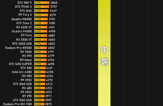 3、有些天梯图会采用显卡的公版默频成绩作为排序的依据,以确保比较的公平性。
