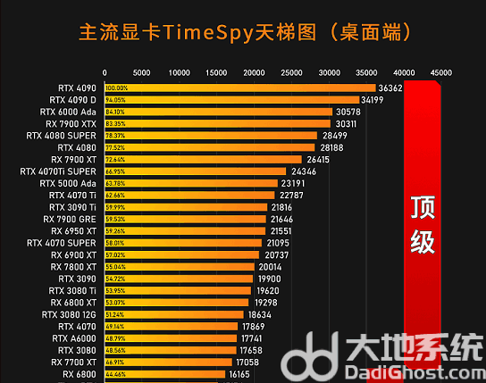 2、大多数显卡天梯图排行主要以3D MARK跑分成绩排行,跑分成绩包括渲染能力、光追性能、图形算力等。