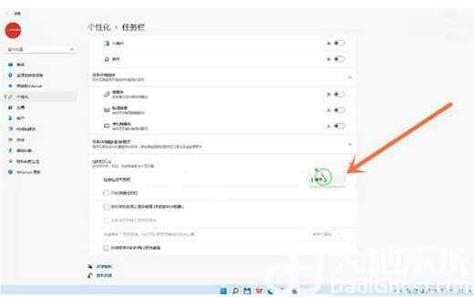 3、在任务栏行为里,将任务栏对齐方式选择左即可。