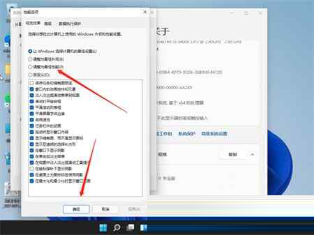 3、接着勾选其中的“最佳性能”,并点击下方“确定”保存设置。