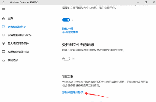 下拉找到添加和删除排除项,并点击进去
