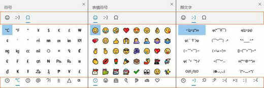 在很多时侯我们需要输入一些特殊符号,如数字符号等。Win10在特殊符号上提供了一个比较快捷的方法,在需要输入特殊符号时只需要按【Win+;】或【Win+.】即可打开表情与符号面板。