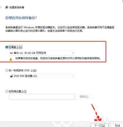 6.选择备份保存位置和备份驱动,选择备份保存位置和备份驱动后,进入下一页。