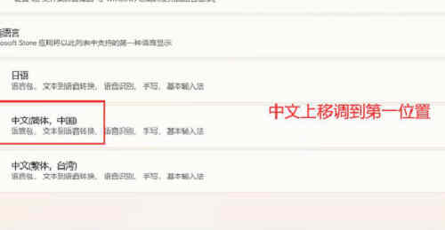 2、找到“首选语言”设置, 并且把中文简体,上移到第一位置