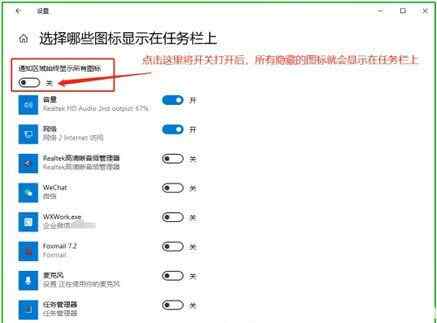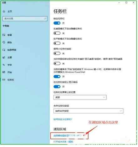 将“通知区域始终显示所有图标”开关打开,如下图所示“”