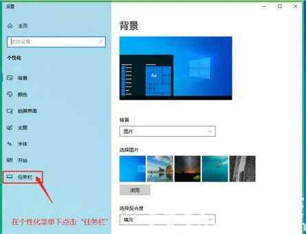 在个性化菜单中选择“任务栏”如下图所示: