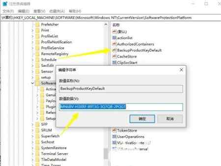 5、在右侧窗口中找到“BackupProductKeyDefaul”键值,打开窗口中就是注册成功的激活密钥了。