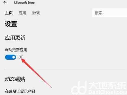 5、这时会打开应用商店的设置窗口,找到“自动更新应用”一项,看到其开关默认为开的状态,我们点击该开关,使其关闭。