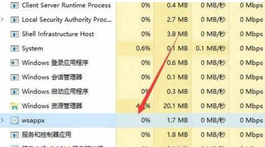 6、这时再查看Windows10的任务管理器,就可以看到该进程占用CPU资源已为0了,过一会甚至会出现自动关闭wsappx进程,从而不再占用系统资源。