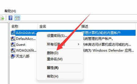 3、最后右键想要删除的管理员账户,点击“删除”就能将它删掉了。