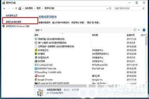 2、然后,进去程序和功能界面后,点击查看已安装的更新;
