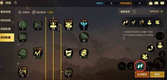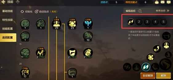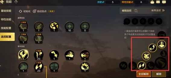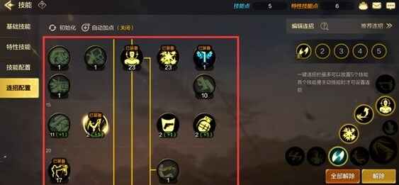 点击后会出现下图中红框内会展示当前已经放置的连招技能。