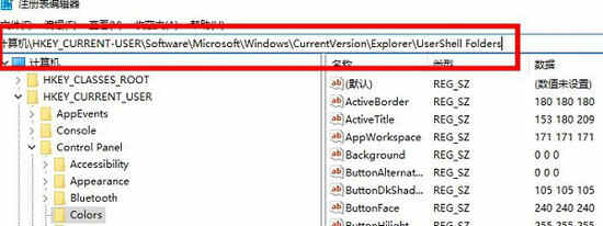 3、找到文件夹HKEY_CURRENT-USER\Software\Microsoft\Windows\CurrentVersion\Explorer\UserShell Folders,直接将内容复制到对应位置即可