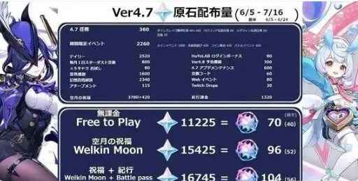 原神4.7版本能够获取多少原石