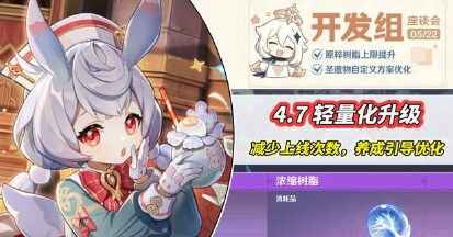 原神4.7版本新改动有哪些?原神手游中的每次版本更新都会带来不同的内容,同时为了让玩家们可以拥有更好的游戏体验,还会进行不同版本的优化改动,在本次的4.7版本中为玩家们带来的优化内容十分丰富,有很多玩家都在好奇具体都有哪些内容,本次就让小编来为大家详细介绍一下4.7版本的优化改动内容,有兴趣的快来看看吧。