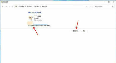 第五步:在输入一个新帐户名中,输入帐户名称,点击更改名称