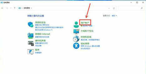 第二步:在win11系统的控制面板窗口中,鼠标点击 用户帐户 选项。