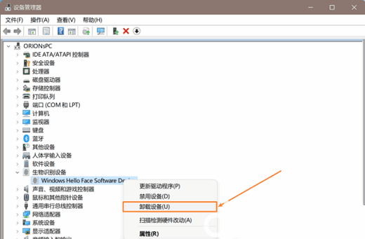 win11系统支持多种登录形式,包含PIN码、指纹、图片、人脸识别等等,大家可以任意选择一种形式登录。但是部分用户反映人脸识别用不了,这个问题怎么解决呢?你先打开设备管理器,之后找到生物识别设备底下的设备,右键选择卸载设备,接着再重启电脑,这个时候应该就能正常使用人脸识别功能去登录系统了。