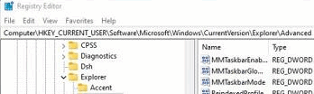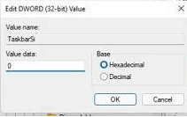 5、如果我们想要任务栏,在这里将数值数据修改为【1】。