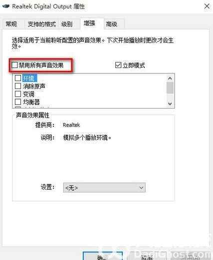 3、切换到【增强】选卡,将会里面的所有特效的勾选都去掉,点击应用—确定。