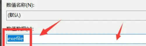 4、将数据值设置为“exefile”即可