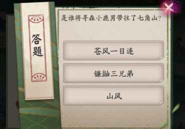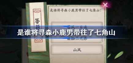 阴阳师端午答题第一天答案是什么?阴阳师手游中在每个不同版本中都会上线相关的活内容,在本次的端午节活动中为玩家们带来了丰富的游戏玩法,在本次的端午答题活动中每日都会更新不同的问题等待玩家回答,今日更新的问题是“是谁将寻森小鹿男带往了七角山“,有想要知道今日问题答案的小伙伴们快来看看接下来的答案分享及其解析内容吧。