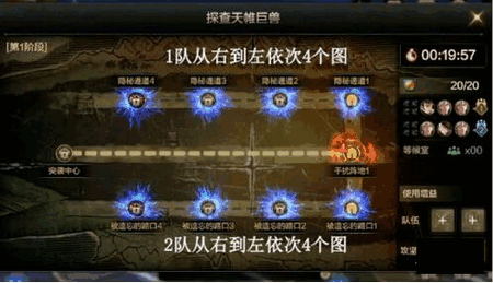 第一阶段这边,首先勇士们只有20分钟的时间,总共的话可以使用20次复活币;针对队伍的强弱,在打法方式上也有些不同。
