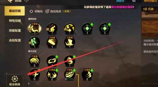 2、然后进入到技能界面之后点击右下角的【职业转换】。