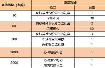 皮肤碎片&积分自选礼盒:打开礼包可任意选择以下奖励之一:荣耀积分*10或皮肤碎片*1