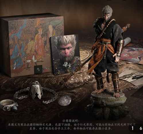 收藏版在上述内容基础上,将紧箍替换为了 40cm 主角模型【直面天命】,将【乱蟠桃】画卷替换为【受心经】画卷。