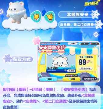 完成售卖任务,即可免费领取典藏外观<北极熊安安>以及多种萌趣表情动作等奖励!