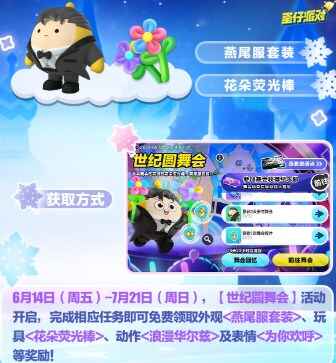 开幕在即!完成相应活动任务即可领取外观<燕尾服套装>、玩具<花朵荧光棒>以及动作表情等庆周年好礼~