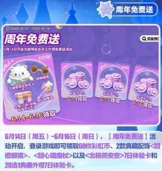 6月14日(周五)—6月16日(周日),登录游戏即可领取丰厚彩虹币、典藏配饰、典藏外观体验卡等好礼~