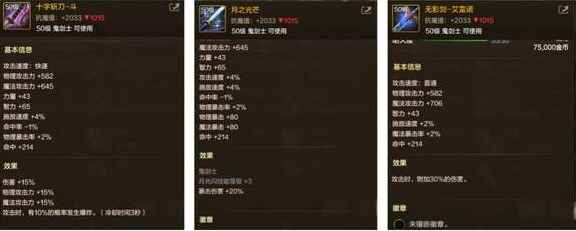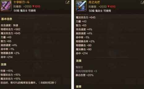 无影剑是30%白字伤害,月之光芒20%暴伤,十字斩刀是15%双攻和黄字,首先阿修罗的毕业套是板甲套,所以套装白字就会和无影剑的白字伤害稀释掉,而且阿修罗本身又没有什么暴击,月之光芒提高暴伤也显得十分鸡肋,所以十字斩刀的实际面板加成和15%的可叠加黄字就显得非常强力,在全身黄字和属强、白字等进行乘算后,都是高于无影剑的白字加成,而且攻速也快,所以十字斩刀在高打造下还是优于无影剑的。