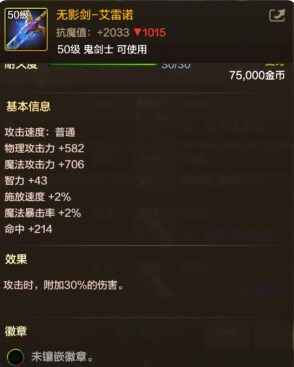 无影剑魔攻高于太刀60点左右,但是由于太刀智力加成更高其实相差不大,所以在魔攻面板上,太刀和短剑实际持平。