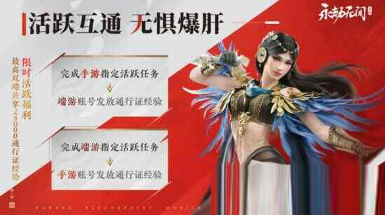 虽然游戏内的通行证无法互通,公测首月,我们会在游戏外开启活跃互通活动。完成绑定后,在端手任意一端完成指定活跃任务,另一端可获得通行证经验,双端总共最高可享24000点的通行证经验!