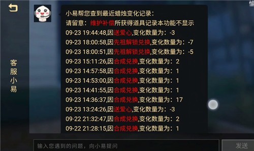 总之游戏内的精灵客服功能就可以查看蜡烛合成记录,用于计算蜡烛机制还是非常实用的。