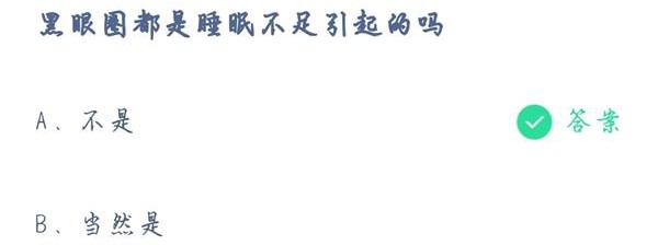 黑眼圈是一种十分常见的情况,可以说现在每个人或多或少都存在一定的黑眼圈,很多女性朋友们都会用化妆遮盖黑眼圈。今天蚂蚁庄园小课堂问大家的是,黑眼圈都是睡眠不足引起的吗?一起来看看答案吧。