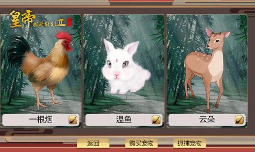 宠物获取渠道非常之多,圣上可以通过商店购买、门客任务、钓鱼打猎获得,甚至是通过完成本纪事件获得。