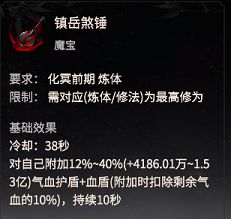 镇岳煞锤:对自己附加气血护盾,施加时会扣除气血