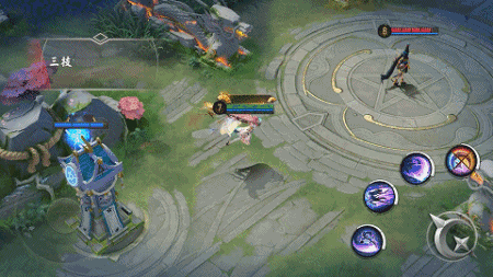 泷夜叉姬向指定方向发起冲锋,对路径上的敌人造成物理伤害,并在冲锋结束时朝摇杆方向进行一次横斩,击飞命中的敌人,并对其造成物理伤害和减速效果。