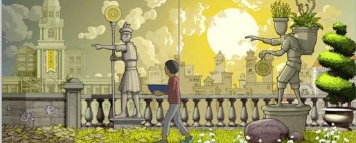 《画中世界》开发者Jason Roberts说,“Gorogoa”是他为童年幻想中的生物起的名字。Jason Roberts包揽了《画中世界》的大部分工作,从绘制到创意设计到编程,几乎都由他一人完成,而负责音效设计的Eduardo Ortiz Frau则为《艾迪芬奇的记忆》《史丹利的寓言》设计过音效。
