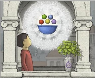 他虔诚并畏惧着这个不属于这个世界的神秘生物,他穿过画框,拼接道路,在布纹中寻找蛛丝马迹,推敲每一个想法。最终,他集齐了五颗彩色宝珠。